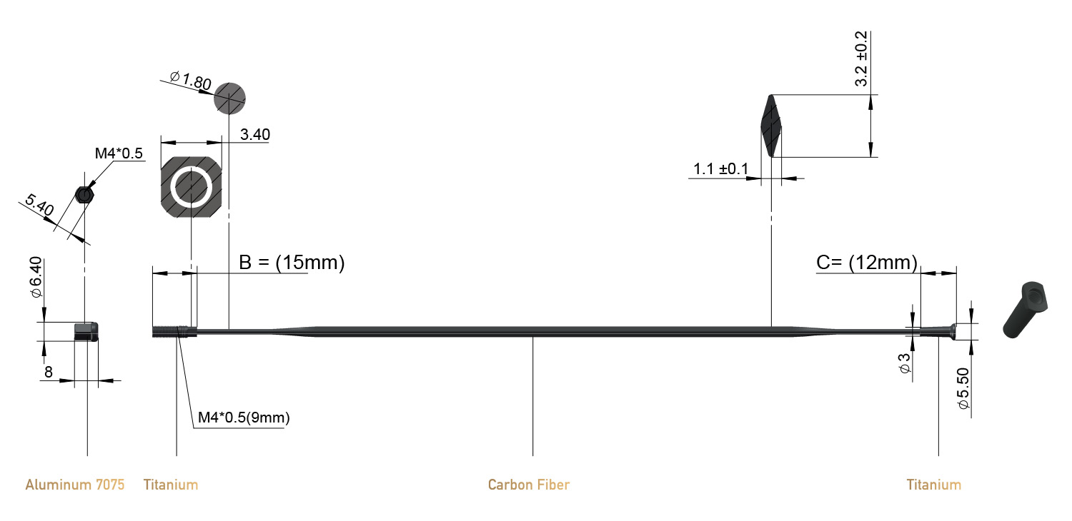 [T-Torque] Straight Pull Carbon Fiber Bicycle Spoke 1.86g